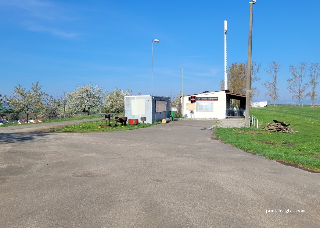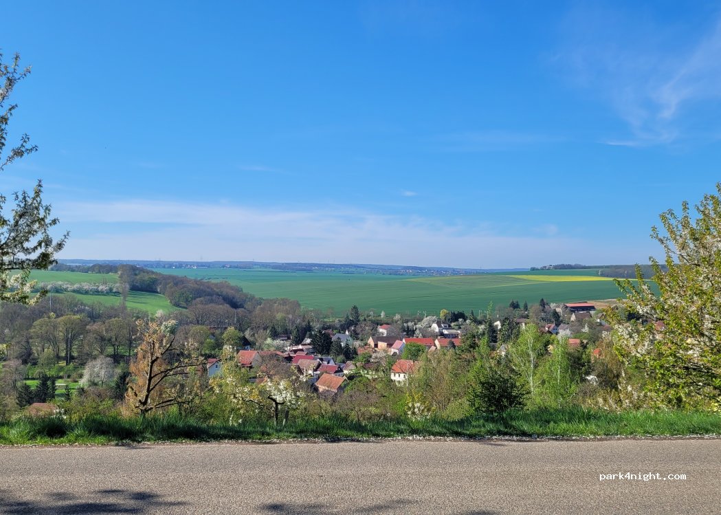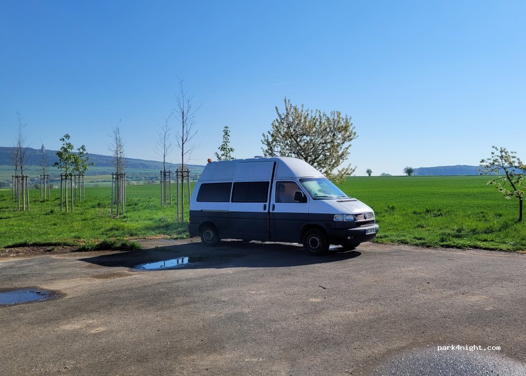 Parfait pour passer la nuit très calme . Belle vue sauf qu il y a une aubette prévue pour le football qui gâche la vue qui pourrait être magnifique. Il y a un cerisier avec des fruits ( super ) et nous sommes à 25 minutes à vélo du camp de Buchenvald que je recommande vivement de visiter ( gratuit )