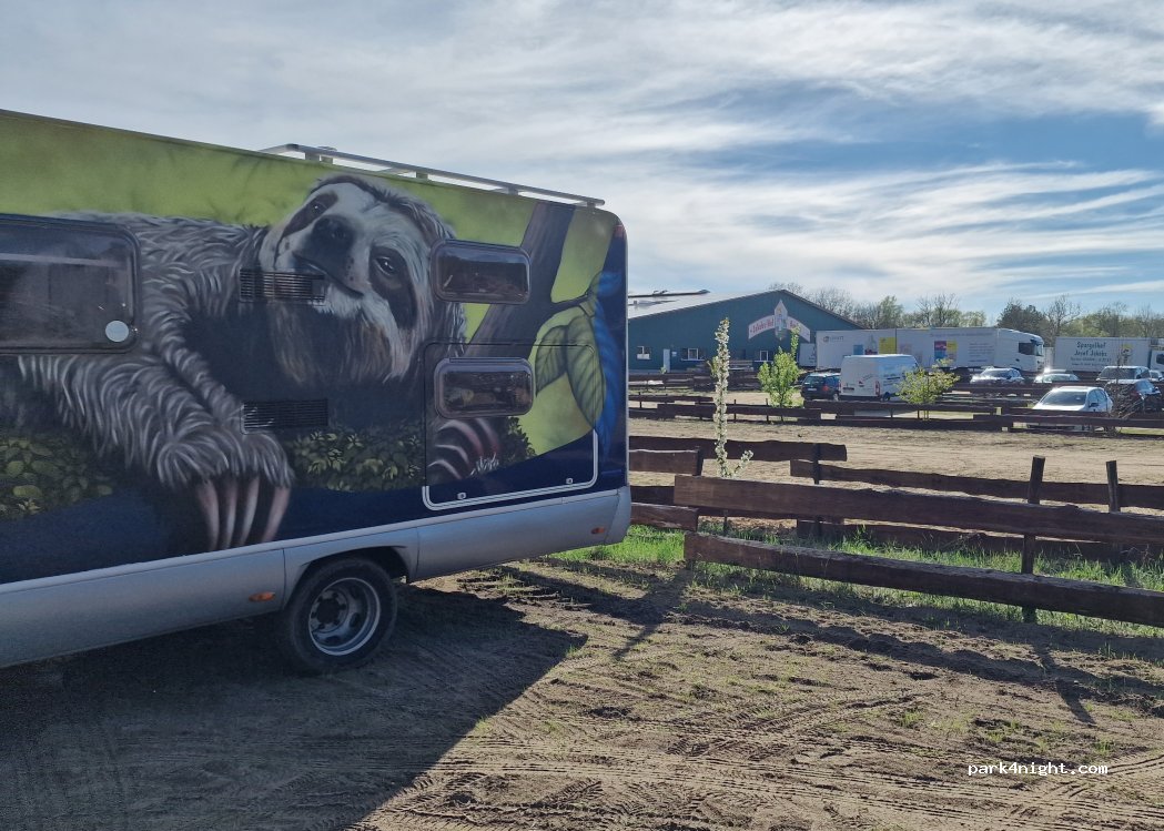 There is a parking space for motorhomes directly in the parking lot of the Jakob family's asparagus farm. It's not far from the Jakobs-Hof Beelzig recreational/sales/restaurant area. A large gas station is just 200 meters away.