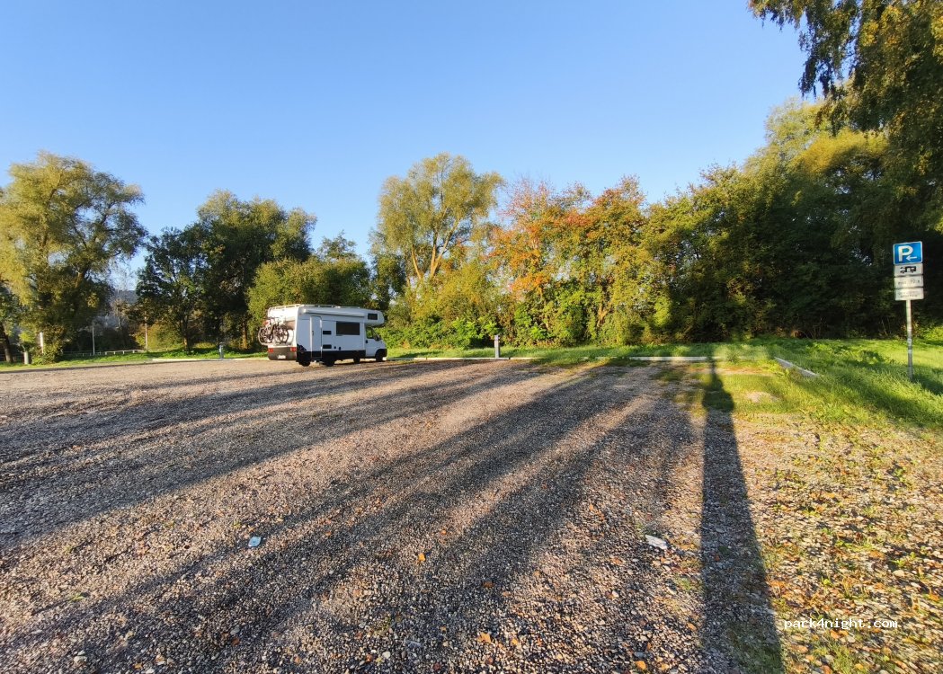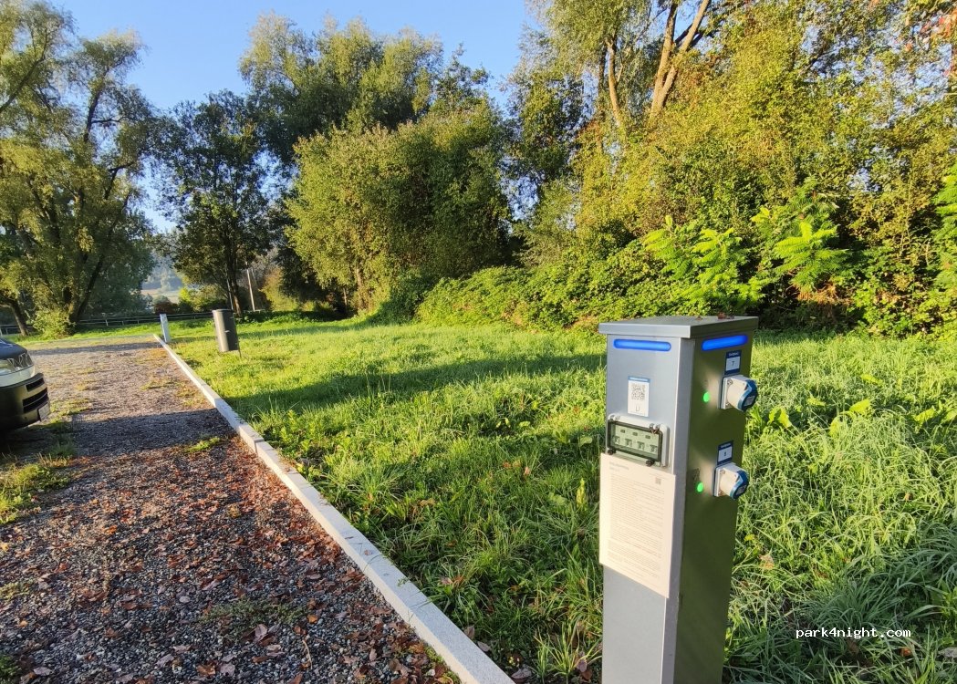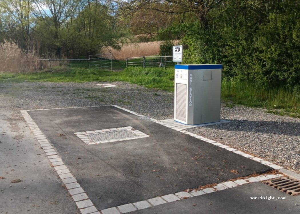Einfacher Kiesparkplatz am Rande eines Dorfes ohne touristischen Wert. Einzig die moderne V/E gefällt, diese lässt aber nur das Entsorgen von Grauwasser kostenlos zu, Wasser und Schwarzwasser-Entsorgung kostet - ist aber anders als am Automaten angeschrieben über den QR Code nicht zu buchen. Schade!