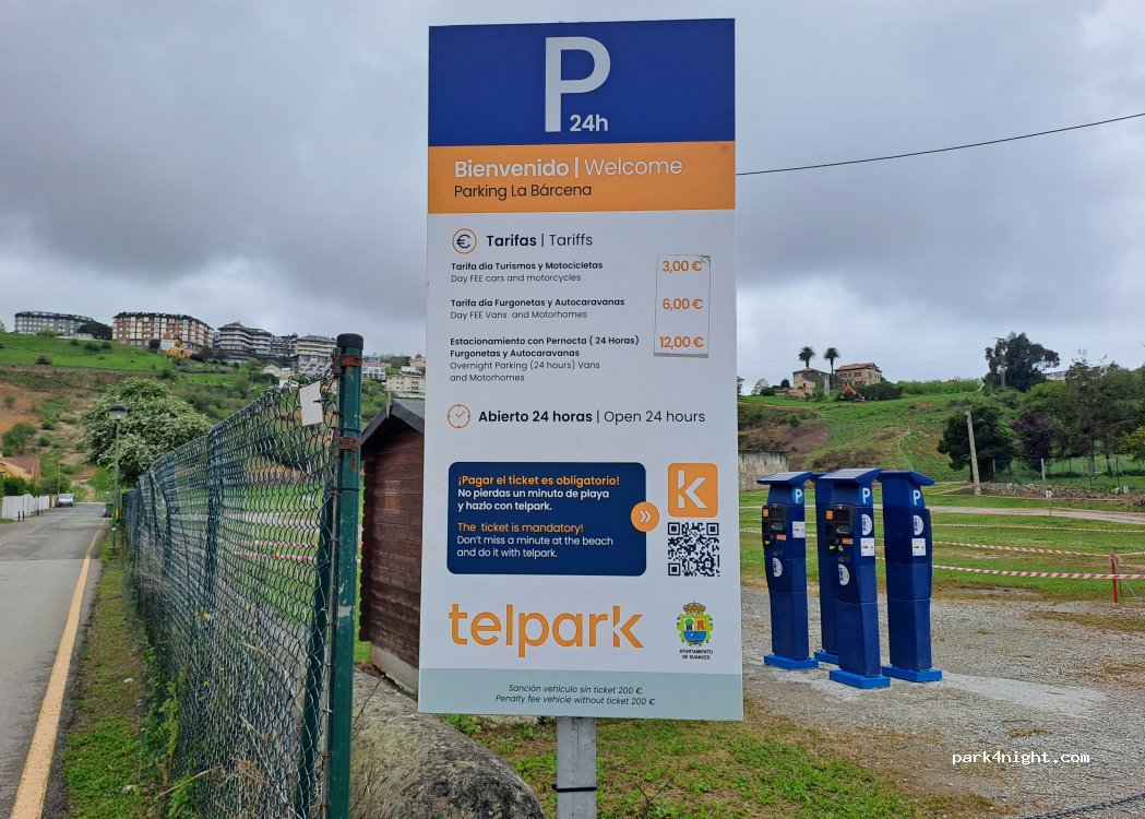 parking 12€.se puede pecnortar tranquilo a lado de la playa. sin servicios. subes las escaleras de la colina hay unas cuantas pero merece la pena y llegas a las letras de suances donde ves todo desde arriba. campers y autos intentar aparcar todas juntas al final y en la primera calle del final (si no os dirán de moveros)