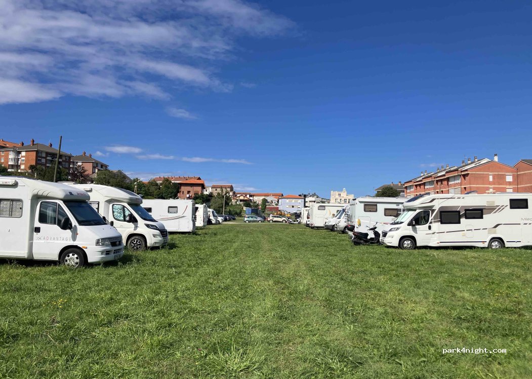 Una zona verde muy bonita con muchas plazas,y cerquita de la playa.Le pongo 4 estrellas porque no tiene servicios de ningún tipo y el precio me parece excesivo para no dar servicios.Espero que el ayuntamiento nos tome un poquito más en cuenta ya que dejamos bastante dinero en parking tiendas y restaurantes de la zona.