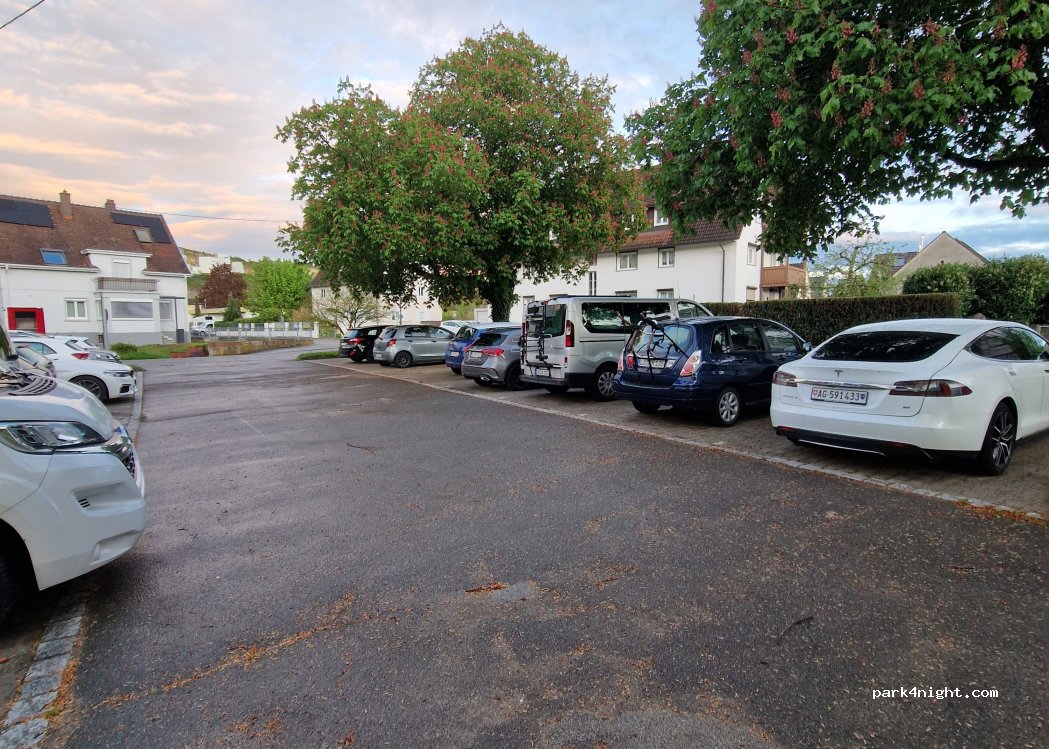 Sehr ruhiger Parkplatz, ca. 20 Stellplätze. Die Stellplätze sind für Vans/Wohnmobile von max. 5,99 m geeignet; angrenzender Spielplatz mit grüner Wiese.