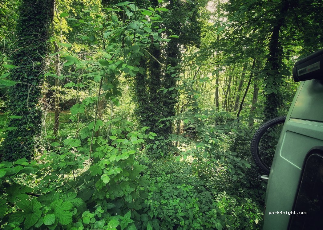 Parking lot of the lake, very quiet. Outside the bathing season you can stay well.