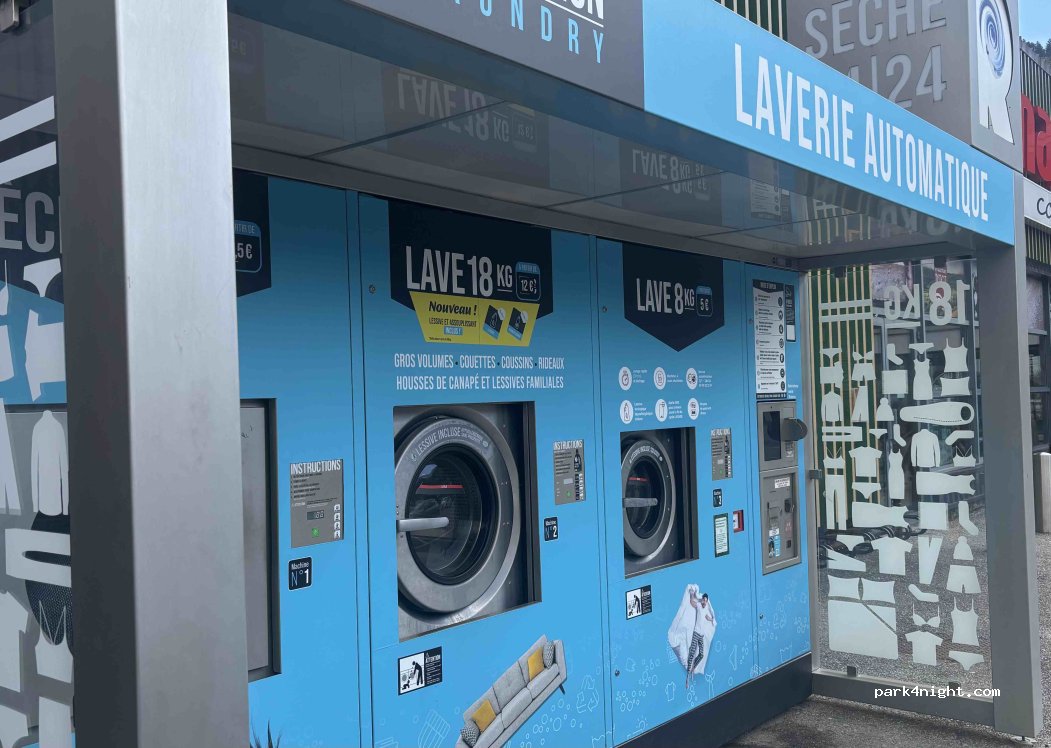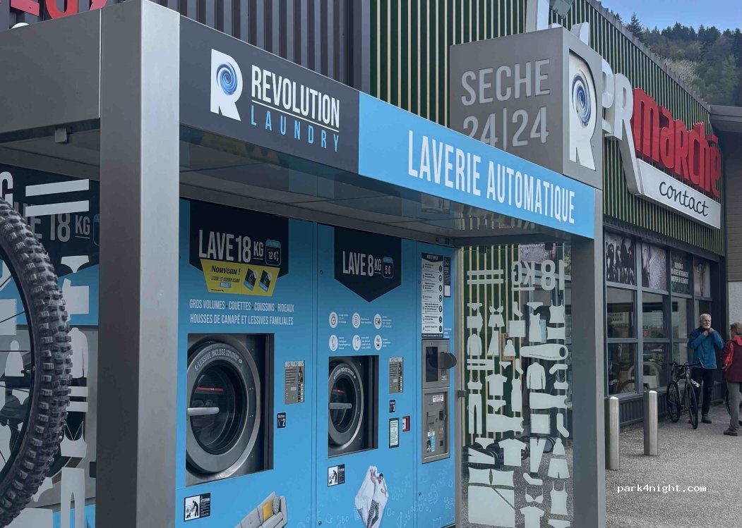 Laverie automatique REVOLUTION LAUNDRY. Lessive incluse. Attention : le sèche-linge ne sèche pas très bien. Prévoir deux cycles de 20 minutes à haute température pour 9 kg de linge.