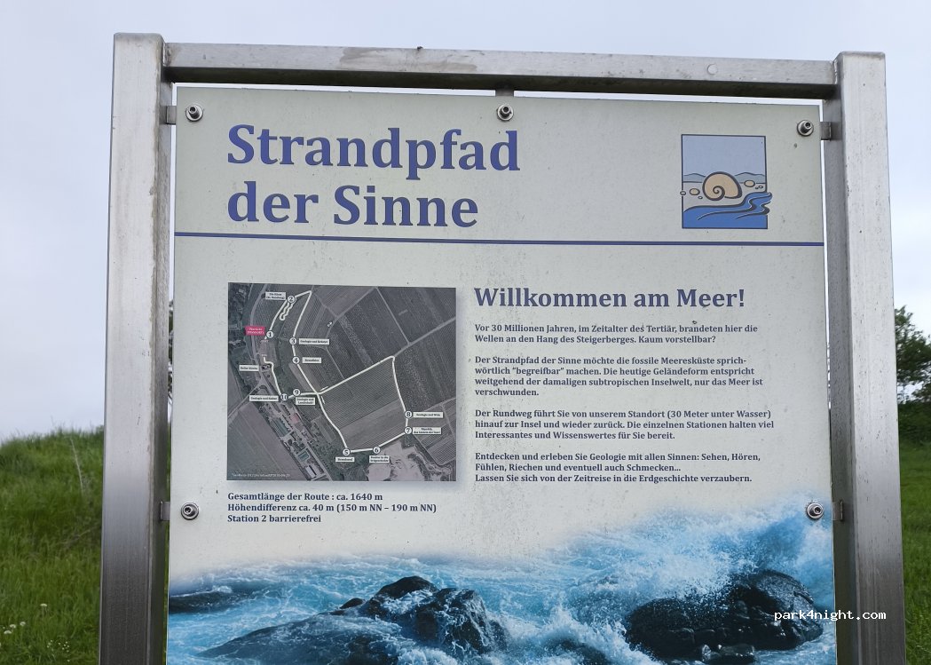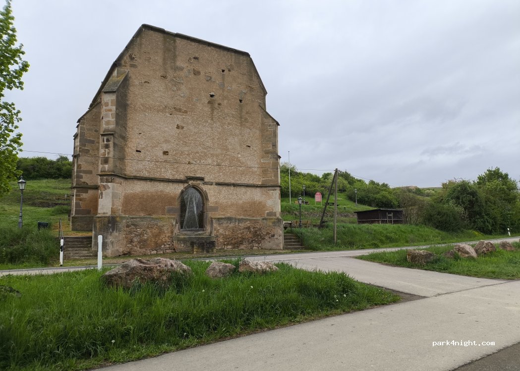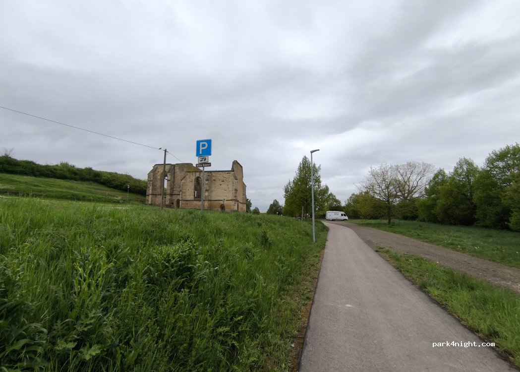Schöner sauberer Parkplatz an einer alten Kirchenruine. Es gibt viele Wandermöglichkeiten, unter anderem den Strandpfad der Sinne, der durch die Weinberge führt. Die Verbindungsstraße ist Nachts wenig befahren.