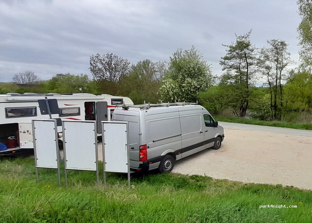 We spent a nice, peaceful night in the company of other two rvs. Its just an even parking place by the river and a cycle path,perfect if you have a dog.