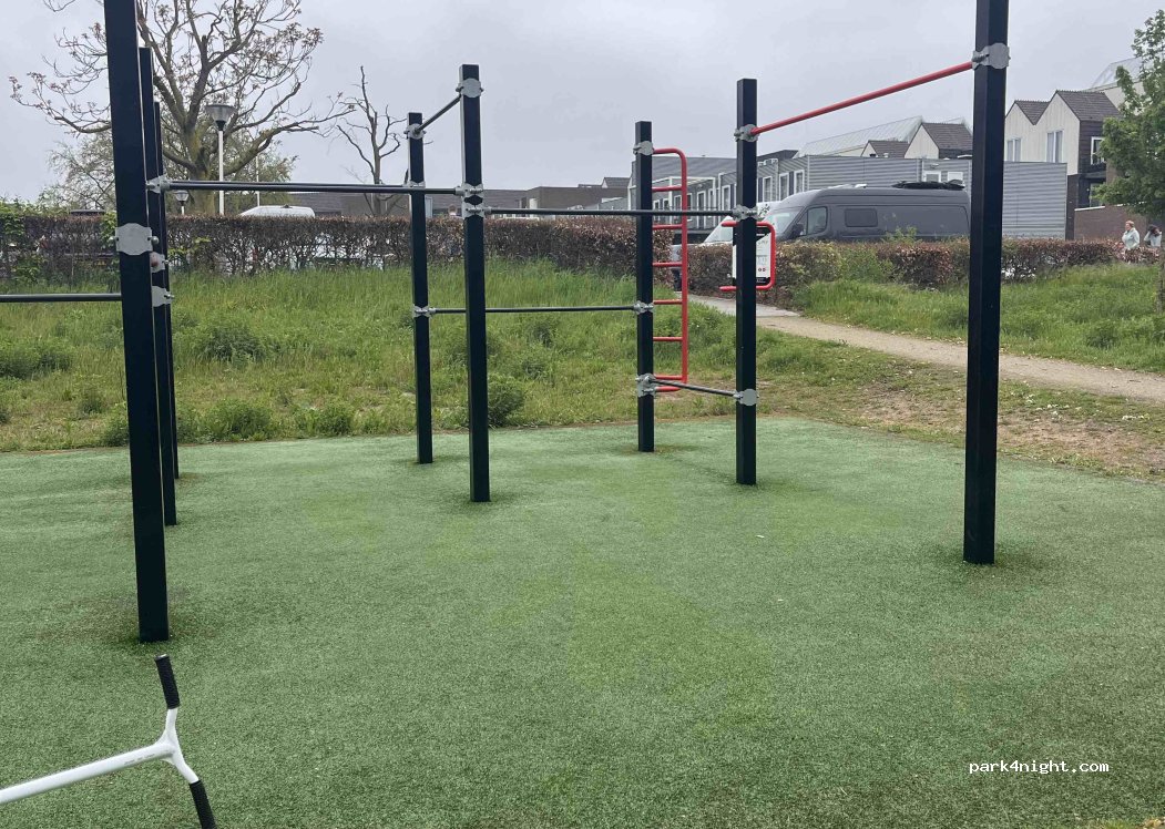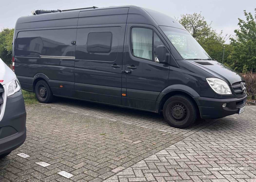 Parking near Basic Fit. We spent a quiet night here, right next to a playground and calisthenics park. Shopping is within walking distance. There's a drinking water pump, but it's not possible to fill the camper.