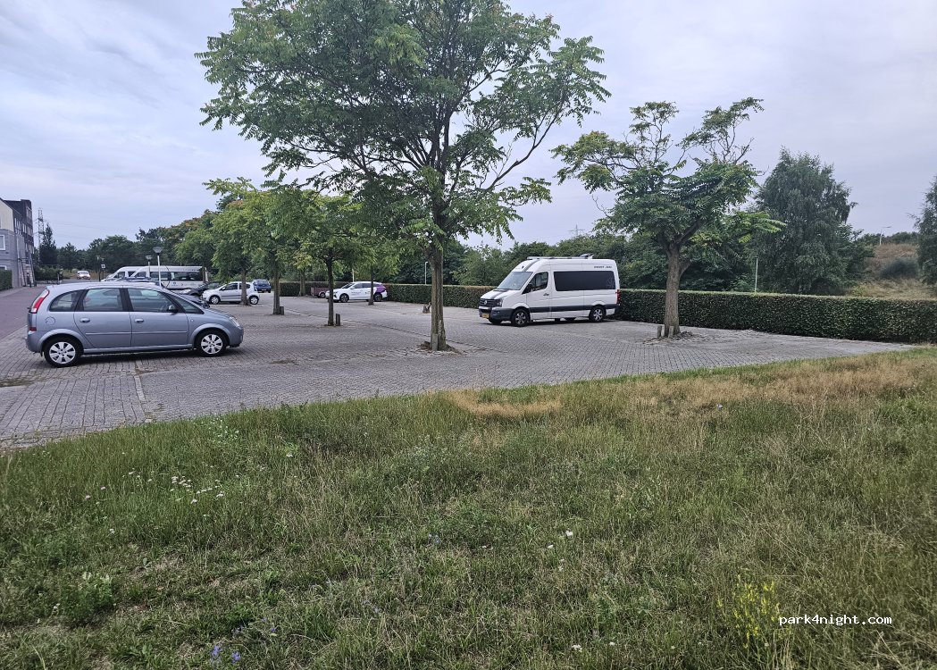 Parking à proximité de Basic Fit. Nous avons passé une nuit tranquille ici, juste à côté d'une aire de jeux et d'un parc de gymnastique. Les commerces sont accessibles à pied. Il y a une pompe à eau potable mais il n'est pas possible de remplir le camping-car.