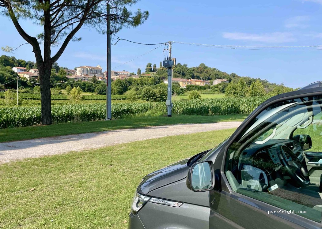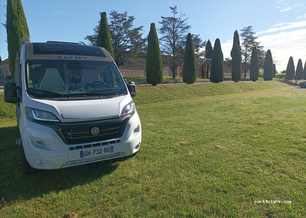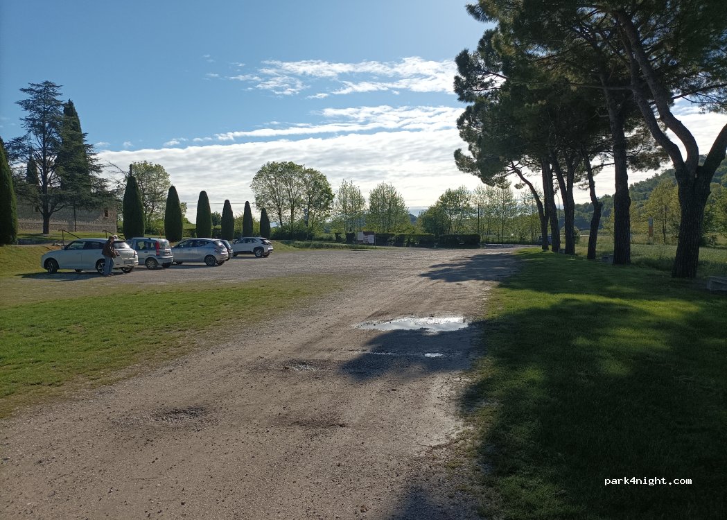 Parking calme et spacieux, bordé d’arbres pour se mettre à l’ombre. Notre présence n’à pas semblé dérangé les locaux.