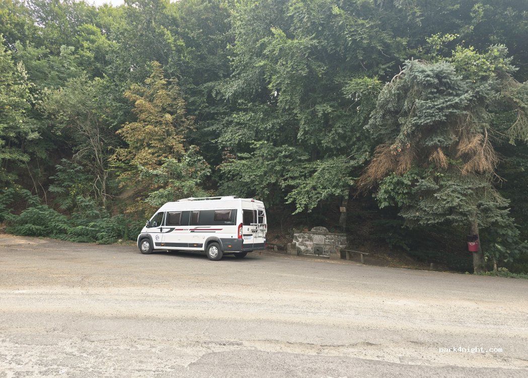 Eau fraîche pour le remplissage. Et un grand parking - également adapté aux nuitées, bien qu'il soit dans la rue.