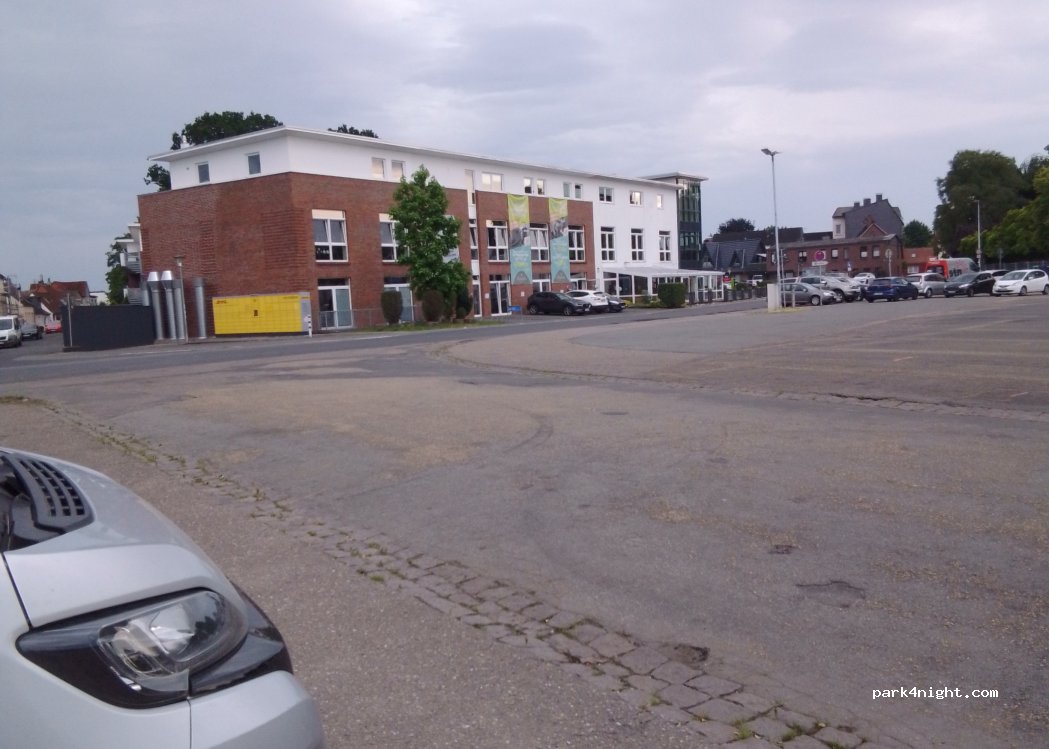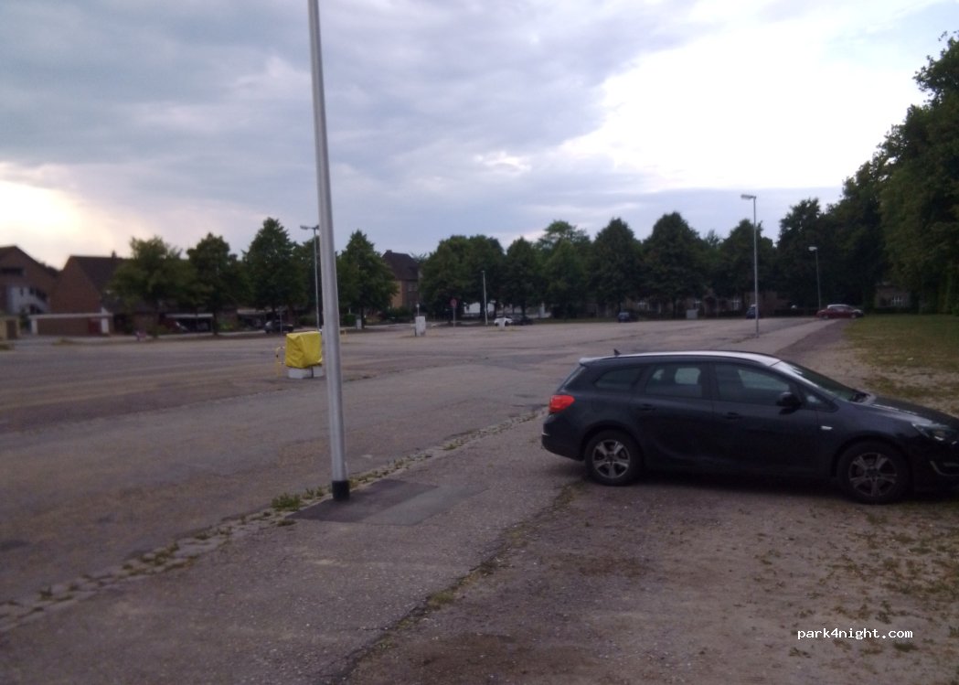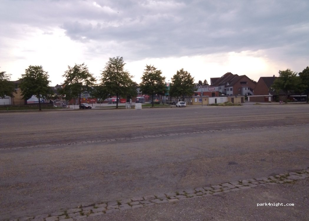 Großzügiger Platz, Sonntag Abend nahezu leer. WC 700 m entfernt. Restaurant gleich nebenan, REWE gegenüber. Außer Vogelgezwitscher nur ein gelegentlich vorbeifahrendes Fahrzeug zu hören.