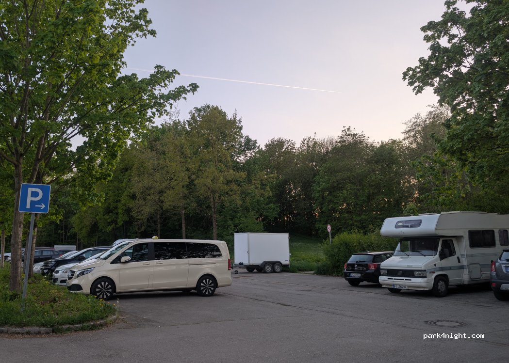 Parking à proximité de l'aéroport. très calme. Ni un panneau d'interdiction ni une limite de temps. Suffisant uniquement pour les fourgons, voir photo