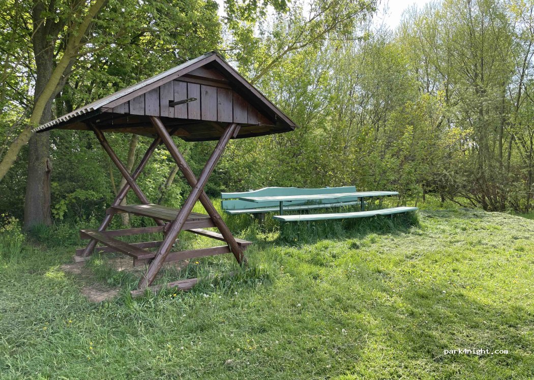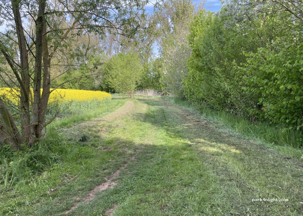 Endroit calme à la campagne le long de la rivière Helme. L'entrée est relativement étroite. Vous pouvez vous en sortir avec une voiture et un VW T5. L'endroit est une impasse pour les véhicules. Espace pour environ 5 campeurs. L'espace est trop petit et l'accès trop étroit pour les camping-cars. Veuillez emporter vos déchets avec vous et laisser l'endroit propre et rangé. Des espaces de repos et de repos partiellement couverts sont disponibles. On entend l'A38 au loin. Cependant, le week-end et la nuit, il n'y a pas beaucoup de monde et cela ne cause pas vraiment de perturbations.