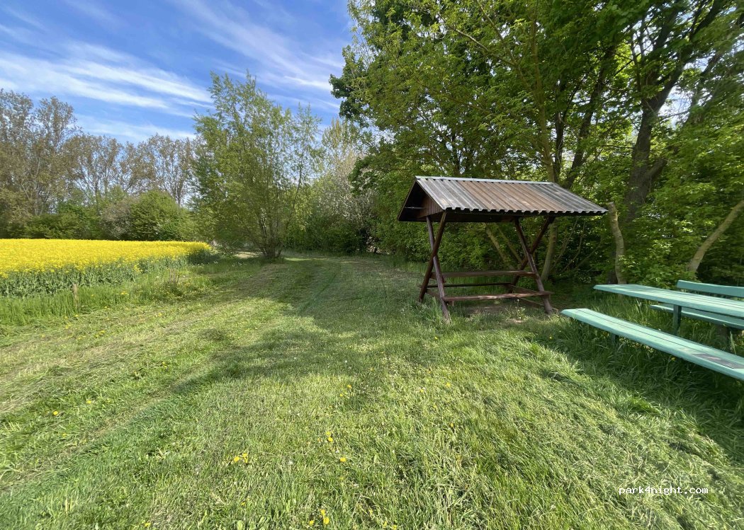 Ruhiger Ort im Grünen entlang des Flusses Helme. Die Einfahrt ist relativ eng. Mit einem PKW und einem VW T5 kommt man durch. Der Ort ist für Fahrzeuge eine Sackgasse. Platz für ca. 5 Camper. Für Wohnmobile ist der Platz zu klein und die Anfahrt zu eng. Bitte nehmt euren Müll mit und verlasst den Ort sauber und ordentlich. Teils überdachte Sitz-und Rastmöglichkeit vorhanden. In der Ferne hört man die A38. Am Wochenende und nachts ist sie allerdings wenig befahren und stört eigentlich nicht weiter.