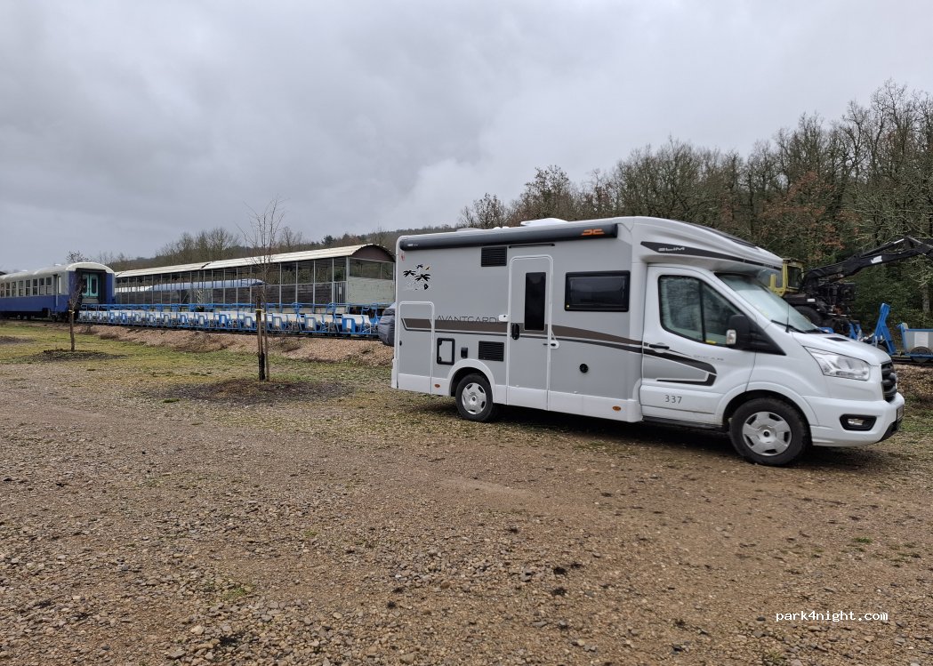 Parking privé du Vélorail, top pour y dormir une nuit et faire l'activité en parallèle. Sanitaire mise à disposition. Pas trop d'ombre mais on a passé une bonne nuit quand même à la fraîche.