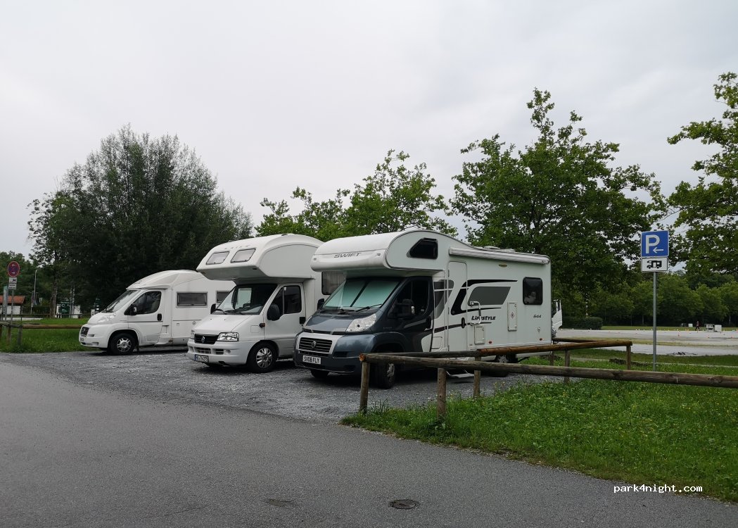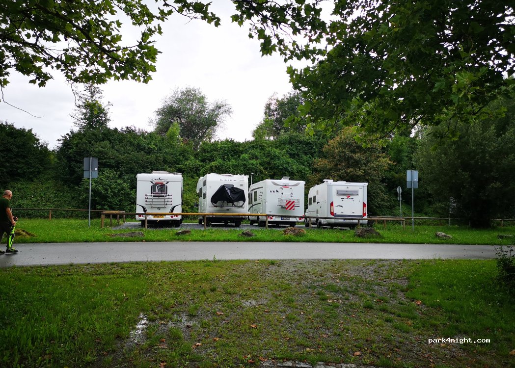 Good for one night, only 4 spaces and very close to each other. Next to the train line but there were only 3 trains that passed the night we stayed. Other than that we had a quiet night. In 15 minutes you can reach the city centre walking in the park. Good if you have dogs.