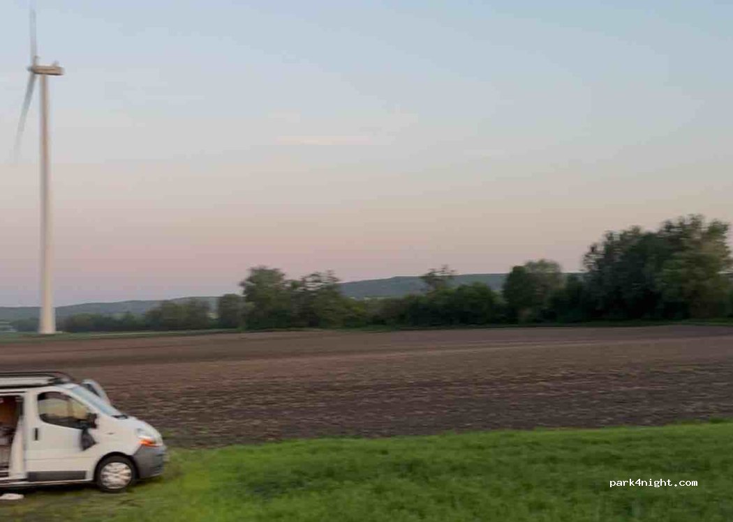 Wunderschöner Platz mitten in der Natur. Perfekter Ort um eine ruhige Nacht umgeben von Wiesen und Feldern zu verbringen. Wir konnten einen örtlichen Bauern fragen ob wir für eine Nacht unterm Windrad bleiben dürfen, dieser hatte nichts dagegen. Zufällig waren auch Windradarbeiter Vorort, diese waren auch super freundlich und hatten überhaupt nichts dagegen dass wir die Nacht hier verbrachten.