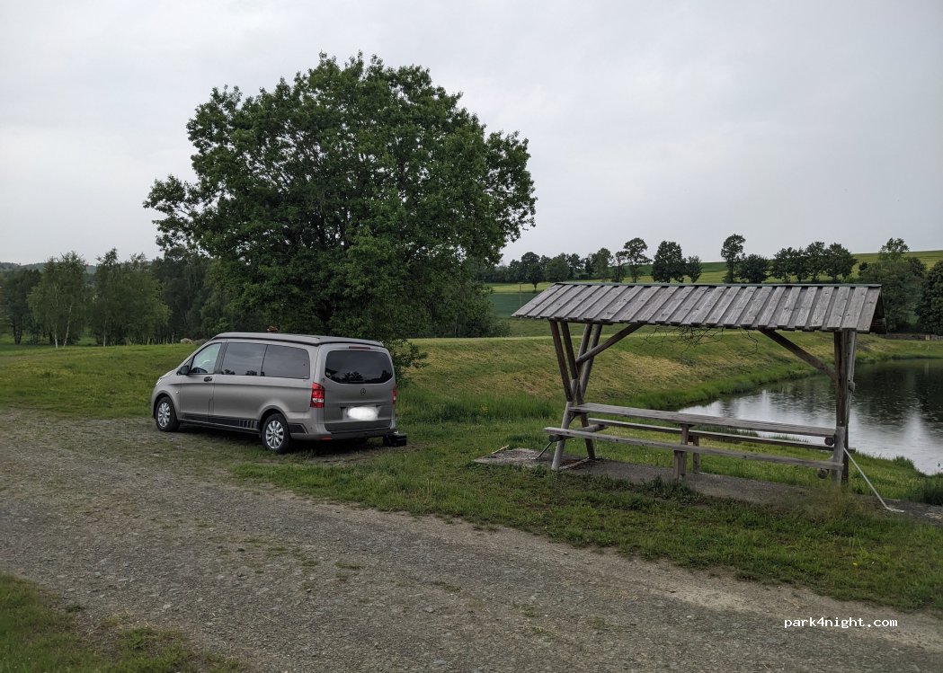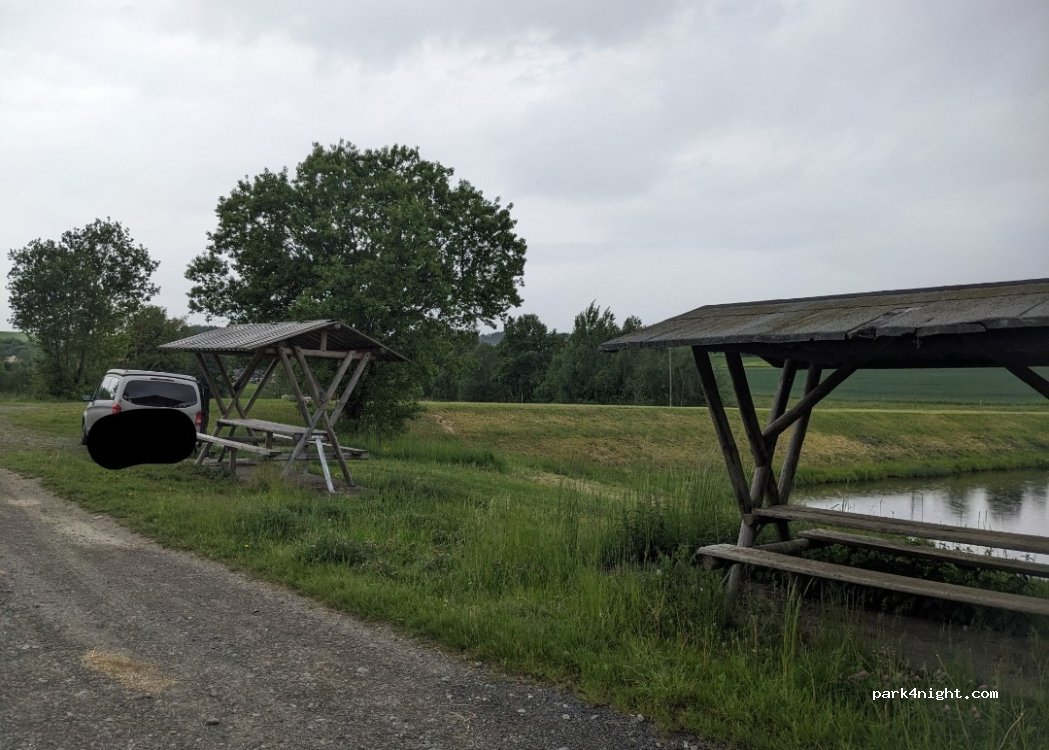 netter Platz, direkt an einem Weiher, Häuser in etwas Entfernung. Überdachte Picknicktische, Platz für 2-3 Camper. haben gut geschlafen, sehr ruhig, kamen nur 2-3 Leute vorbei