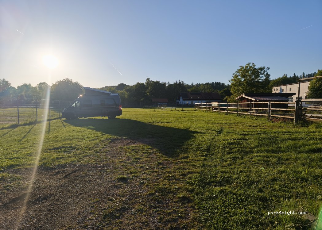Large grassy area designated for motorhomes parking close to the river, 2 km from Schongau. Not much shade. but nature atmosphere. No services. can host probably 15 motorhomes. we will come back.