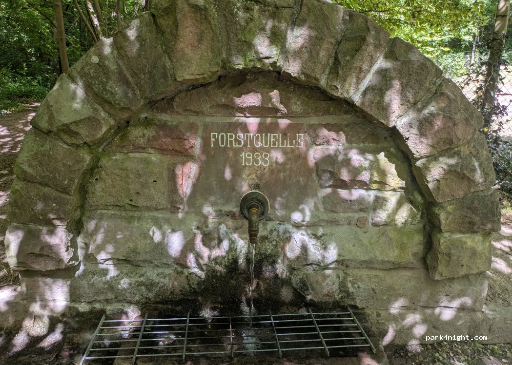Forstquelle guter Durchfluss, mit großem Wasserdieb kann direkt gezapft werden.