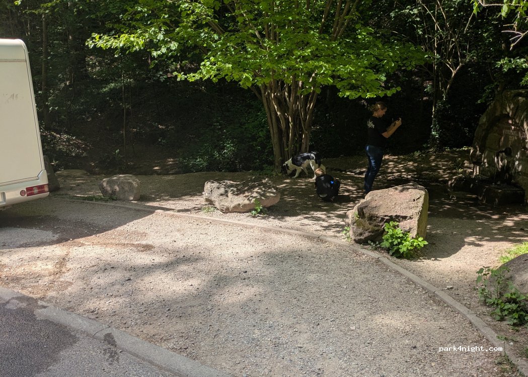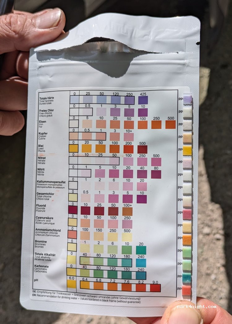 Parking spot next to fountain fits a 7m campervan, but you need a long hose as there are rocks that stop you from parking closer. Great flow!