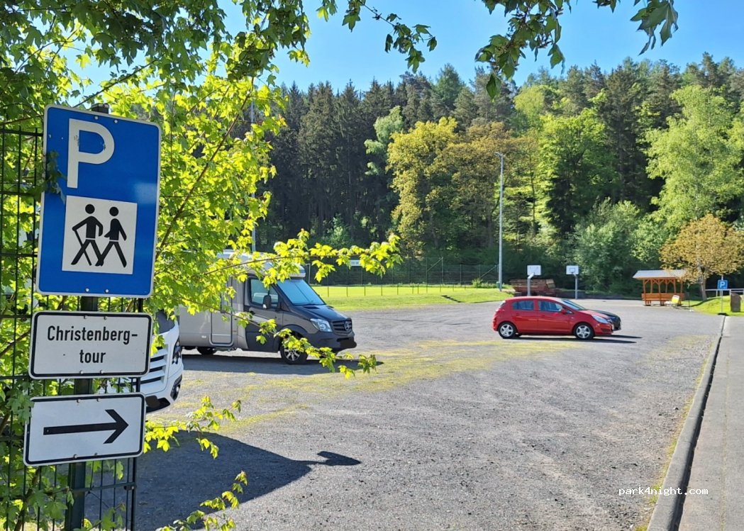 Hikers' parking lot at the end of a street. Also a parking lot for the sports field, basketball court, and TSV 1919 e.V. sports center. No prohibition signs, plenty of space.
