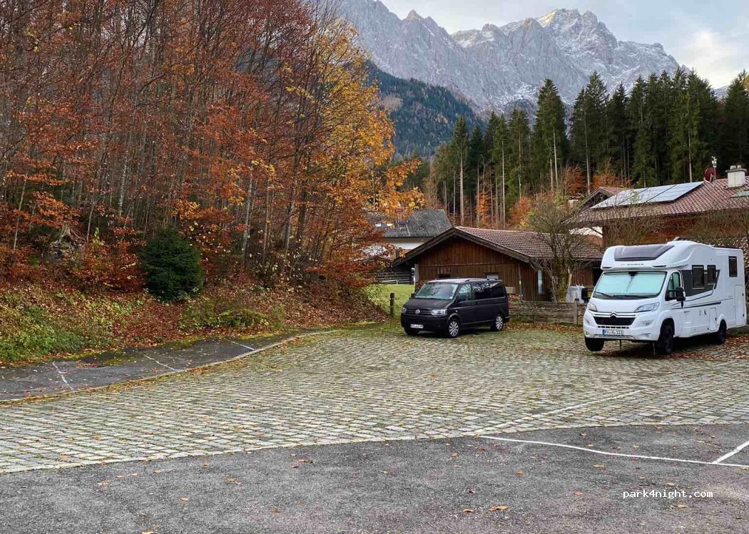 Der Parkplatz befindet sich direkt neben einer Bushaltestelle, von der aus man den Eibsee in nur zwei Haltestellen erreicht – ideal für Tagesausflügler. Die Anlage ist sauber und ordentlich, die Parkgebühren sind allerdings vergleichsweise hoch. Wer also nur kurz parken möchte, sollte die Kosten vorher bedenken.