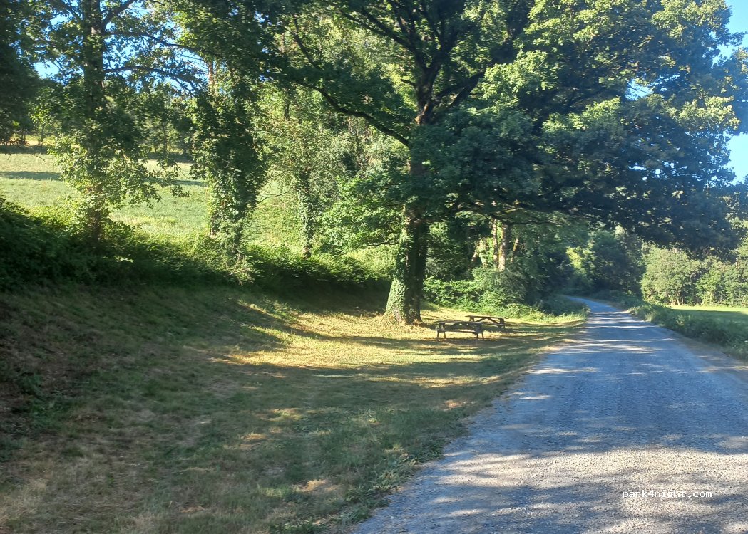 Au bord d'une petite rivière tout le sentier est communal il y a d'autres endroits de stationnement ici est la le long du chemin il amène sur une autres petite route quelques kilomètres plus loin calme et fraîcheur garanti.