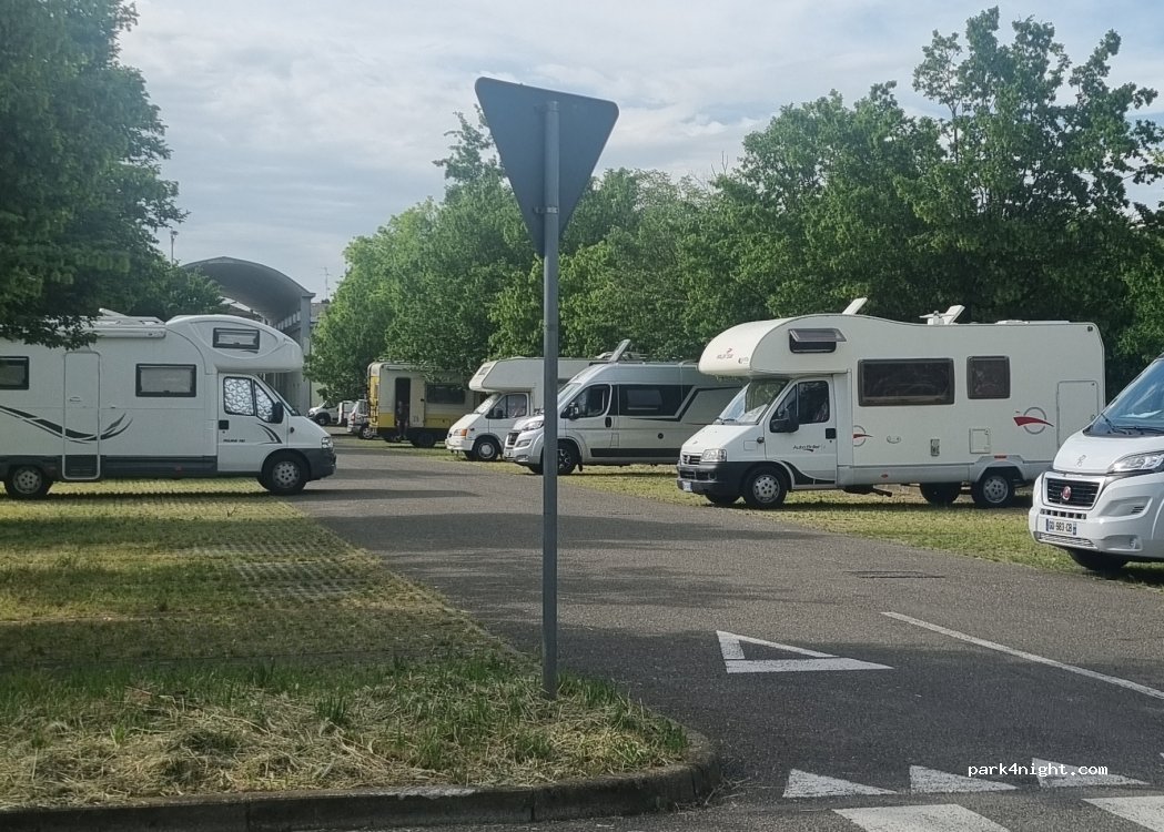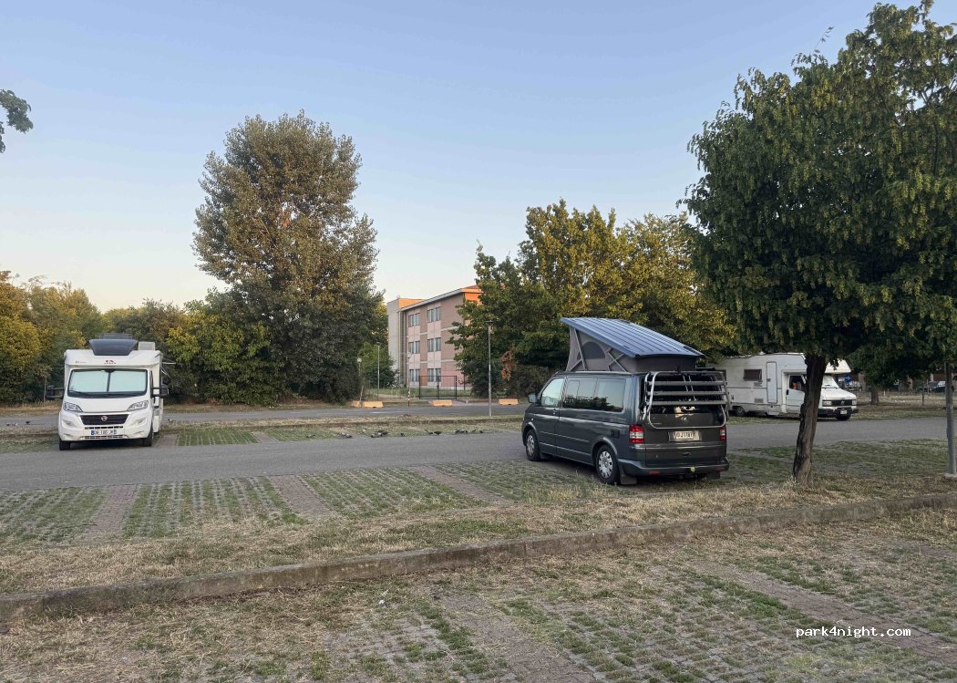 Abbiamo dormito qui venerdì notte. Nessun problema. Silenzioso. Carico acqua potabile e scarico acque grigie. Scarico acque nere. Completamente gratuito. Passa l'autobus per andare in centro. Un minimo di ombreggiamento c'è. Sull'autobus si acquista il biglietto con l' NFC. Grazie al comune di Reggio Emilia per il servizio.