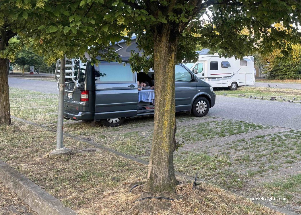 Prima plek voor een overnachting. Vlak bij de snelweg, diverse supermarkten vlakbij. Ook een pizzeria op 2min lopen
