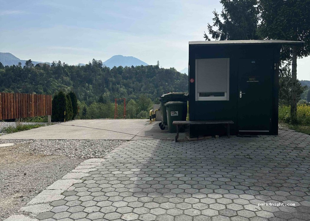 Area sosta molto essenziale e comodissima per visitare il lago. Zona molto tranquilla al di sopra della cittadina di Bled. Servizi essenziali: bagni accettabili, allaccio alla corrente in piazzola, doccia e acqua calda non presenti. Per 20€ in bassa stagione non si può chiedere di più