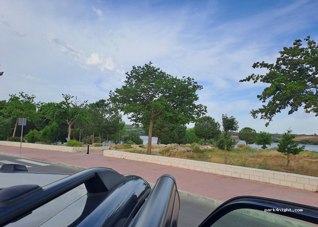 Parking en bord de lac, sans aucun vis à vis, avec accès direct à pied par une petite plage au lac. Très agréable car reculé de la zone camping et des habitations. La guardia civile est passée plusieurs fois sans souci. Un bon lieu pour visiter Arcos sans les inconvénients de la ville, avec baignade agréable.