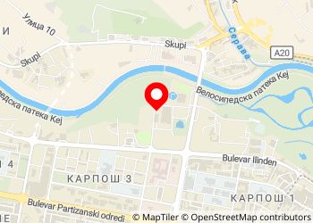Aparcamiento público gratuito junto al centro deportivo y de conferencias Boris Trajkovski. Paseo al este hasta el encantador Parque Municipal y el Centro. Paseo a orillas del río Vardar con bares y restaurantes cerca.