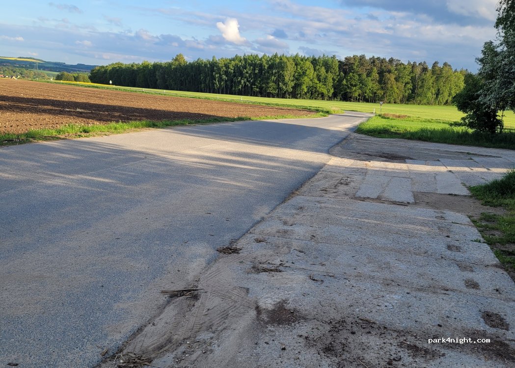 Un lugar fantástico y tranquilo para pasar una noche, justo al lado de la carretera rural entre Fischbach y Stolpen. Al lado de la depuradora, aunque no se nota en absoluto y no hay olores! Se puede oír y ver el camino a lo lejos, pero aún así está completamente tranquilo y es perfecto para dormir. Magnífica vista del castillo de Stolpen. Sin embargo, debes ser autosuficiente, sin servicio.