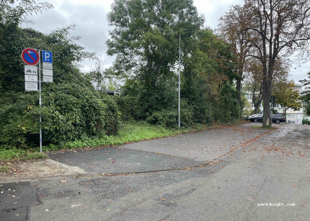 Parkplatz am Fort Hauptstein in einer Sackgasse. Am Wochenende Freiparken, unter der Woche gibt es Knöllchen.