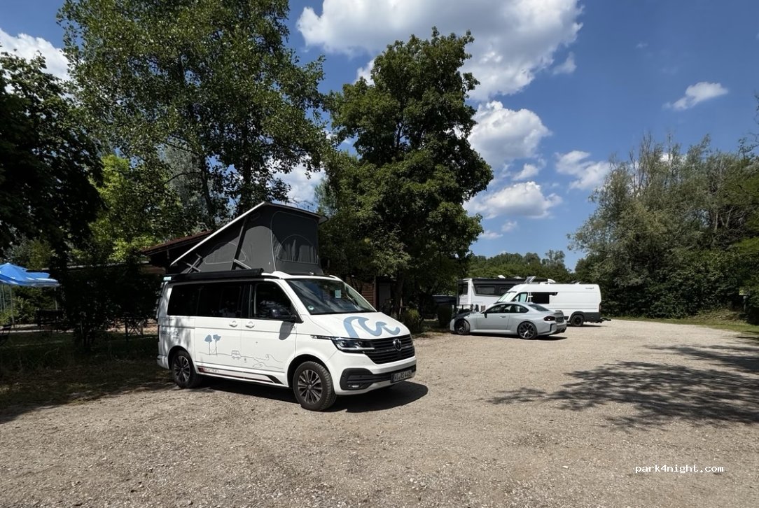 Annehmbarer Stellplatz für eine Nacht. Bäckerei und Schwimmbad sind nicht direkt in der Nähe. Verkehr auf der Straße ist deutlich zu hören. Strompauschale für 3€ ist angemessenen Wasser kostenlos. Duschen und WC sind alt aber sauber.