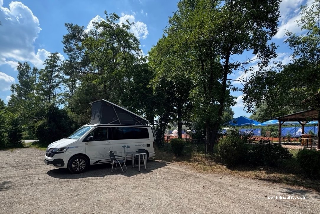 Sehr freundlicher Empfang.Für einen kleinen Stop sehr zu empfehlen.Nutzung der Sanitäranlagen des Tennisplatzes möglich.