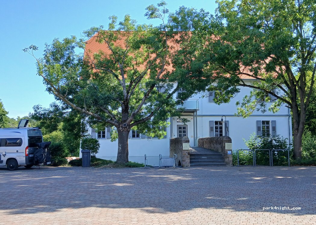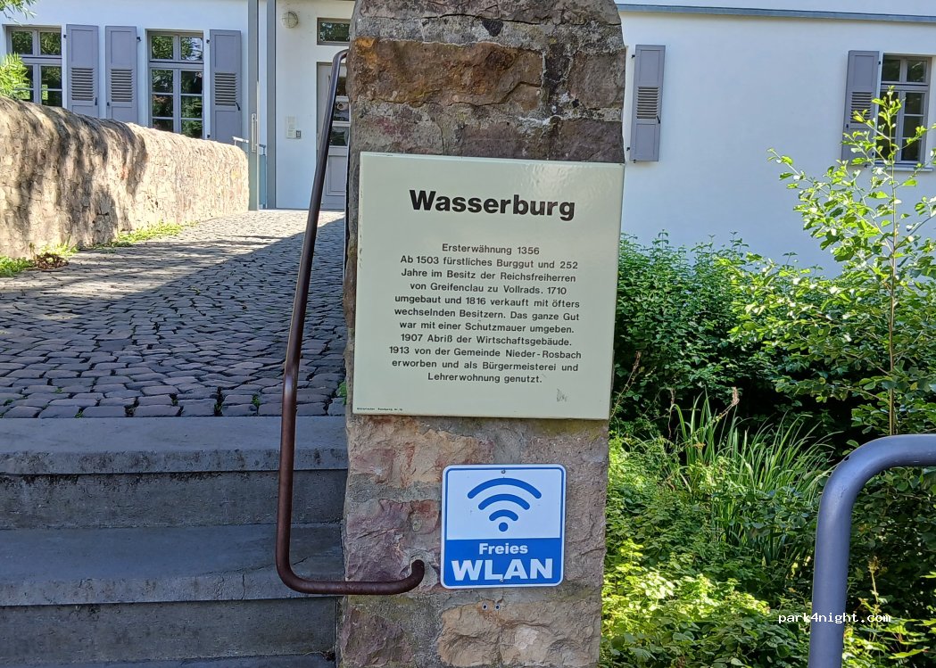 Ein großer Platz direkt vor der Wasserburg im Ortsteil Nieder Roßbach. Wir waren uns unsicher, ob dieser Parkplatz mit dem Hinweis hier in der App identisch ist, sind raufgefahren und hatten eine ruhige Nacht. Einzig die Kirchturmuhr meldet sich alle 15 Minuten, irgendwann sind darüber jedoch eingeschlafen.