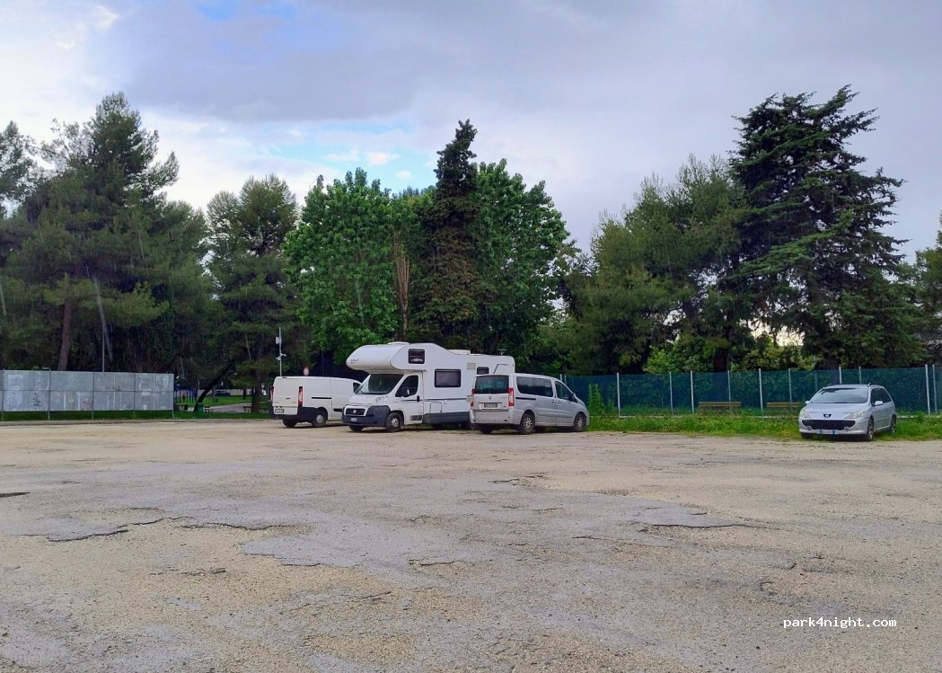 Parcheggio adiacente un parco e stadio in cui la sosta camper è consentita. bagno pubblico e fontanella disponibili. non c'è molto da vedere in zona ma può andare bene per una sosta in alternativa all'area vicina (dove è presente lo scarico) che però è sempre piena di mezzi di residenti che parcheggiano li stabilmente. zona tranquilla