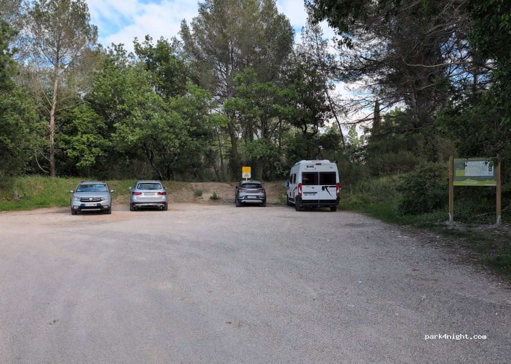 le règlement du site interdit le stationnement nocturne, on ne peut s'installer à cet endroit