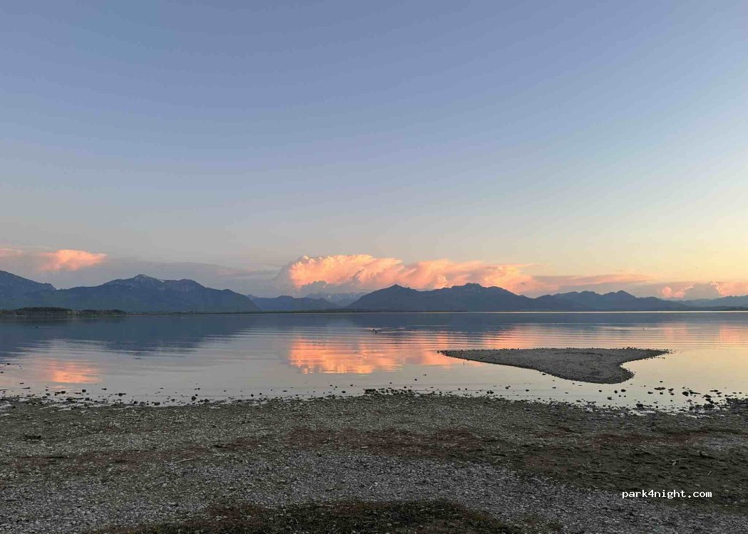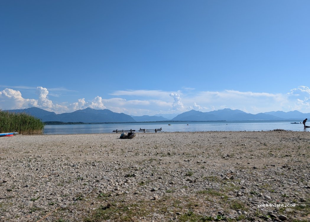 Dieser Platz liegt idyllisch direkt am Chiemsee. Es ist schon recht eng. Ich habe den letzten Platz bekommen, leider auf dem eigentlichen Zeltplatz und musste dafür für eine Nacht 1 Person und Hund immernoch 32€ bezahlen... immerhin ist das Duschen in der Kurtaxe inbegriffen.