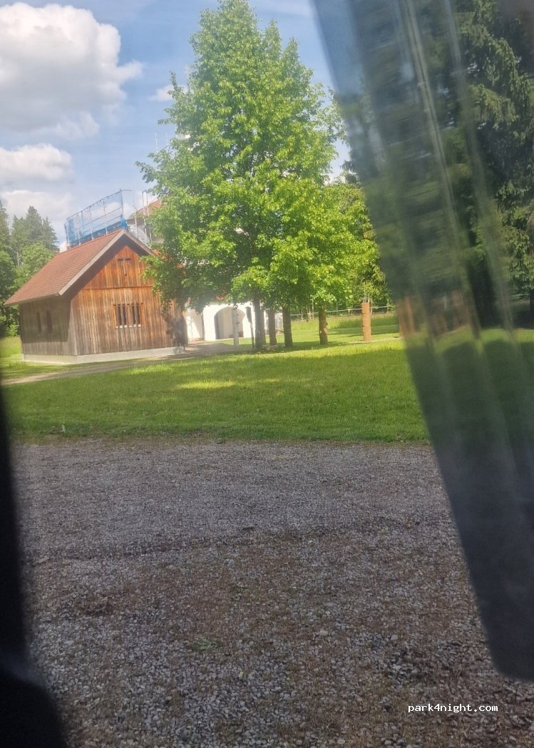 Nous n'avions pas envie de l'aire de repos en face, trop ouverte et proche de la route. Nous avons donc repéré cet endroit de l'autre côté de la route, niché derrière l'église, sous les arbres. Une nuit paisible et agréable, suffisamment loin de la route pour ne pas être dérangés par le bruit de la route. Une église pittoresque à proximité.
