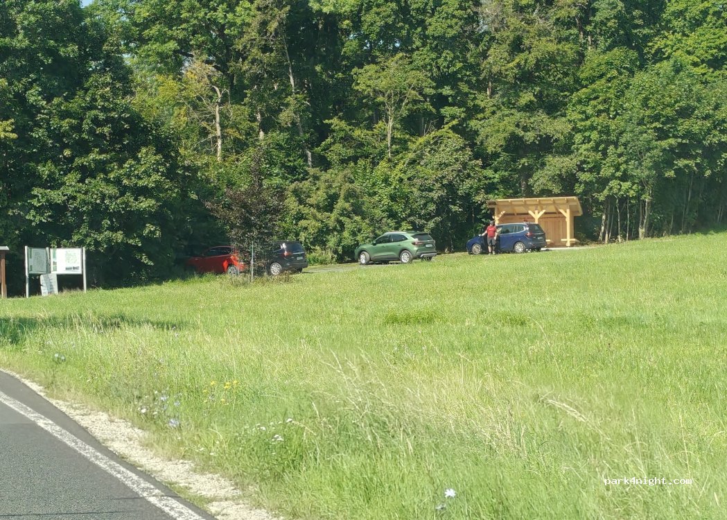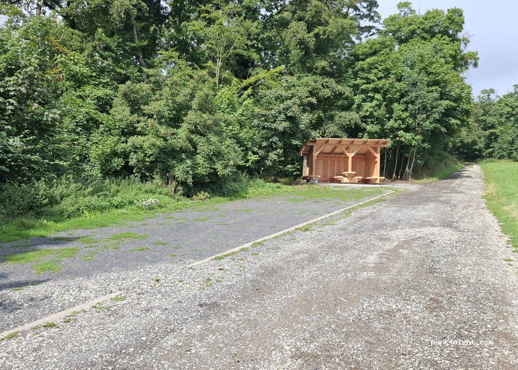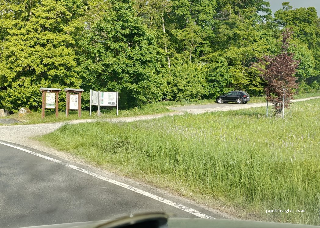 Hikers' parking lot near Kaltenlengsfeld. The parking lot has space for 4-6 vehicles and is slightly sloped. The site is located on a quiet local road. About a 45-minute walk away is a hiking hut where you can buy cake and bratwurst on Sundays from March to October. Numerous hiking trails are signposted.