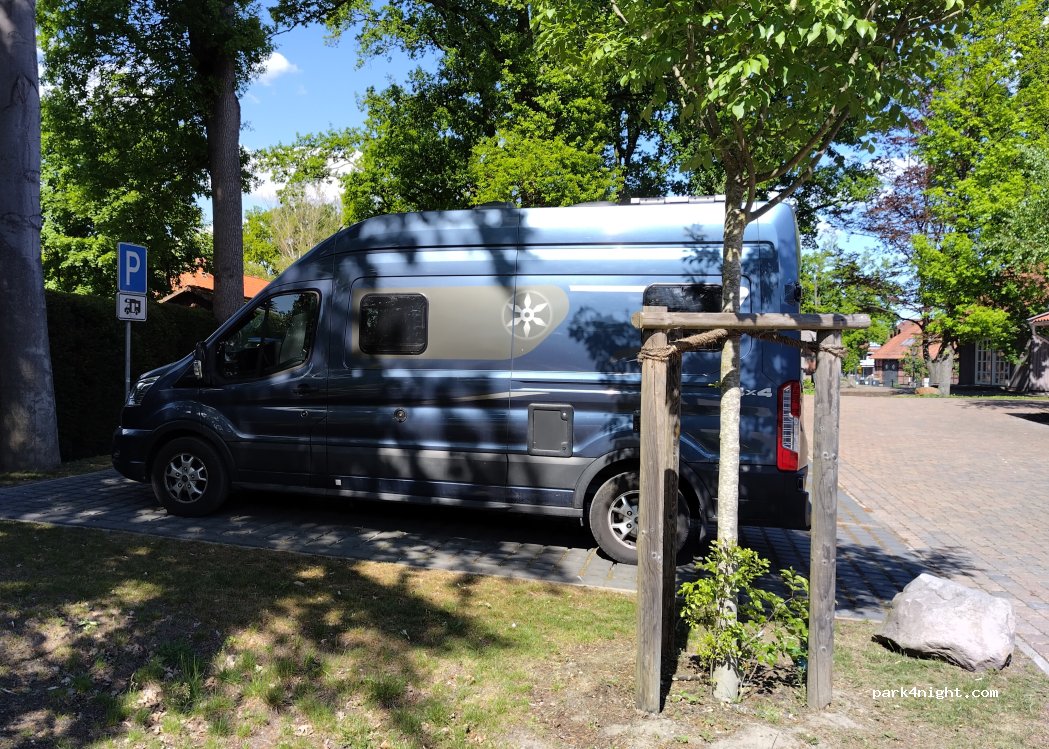 Der neue Stellplatz ist nett angelegt. Der Untergrund besteht aus Pflastersteinen. Direkt nebenan befindet sich der neugestaltete "Olen Drallen Hoff", wo es auch einen Spielplatz und Sitzgelegenheiten gibt. Die Zufahrt (gegenüber einer Fahrschule) ist noch nicht beschildert. Danke an die Gemeinde, das es doch wieder einen Stellplatz im Ortskern gibt.
