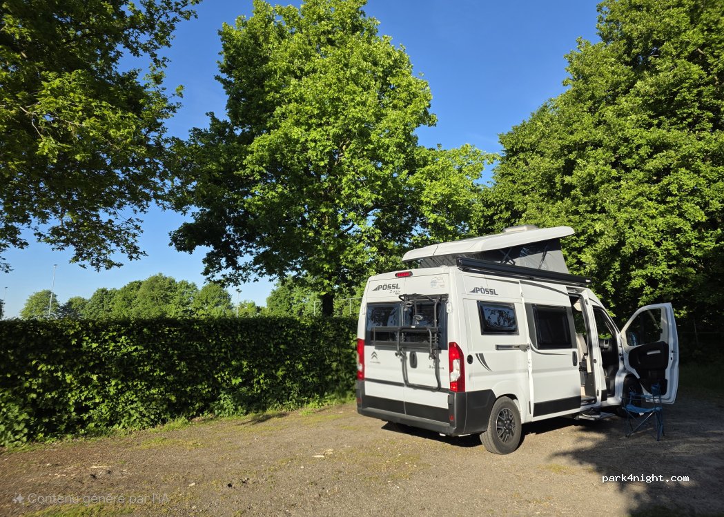 Endroit très calme devant le stade de football. les enfants viennent pour s'entraîner à partir de 8h, mais pas de nuisance dans le renfoncement du parking. top pour passer la nuit avant Toverland.