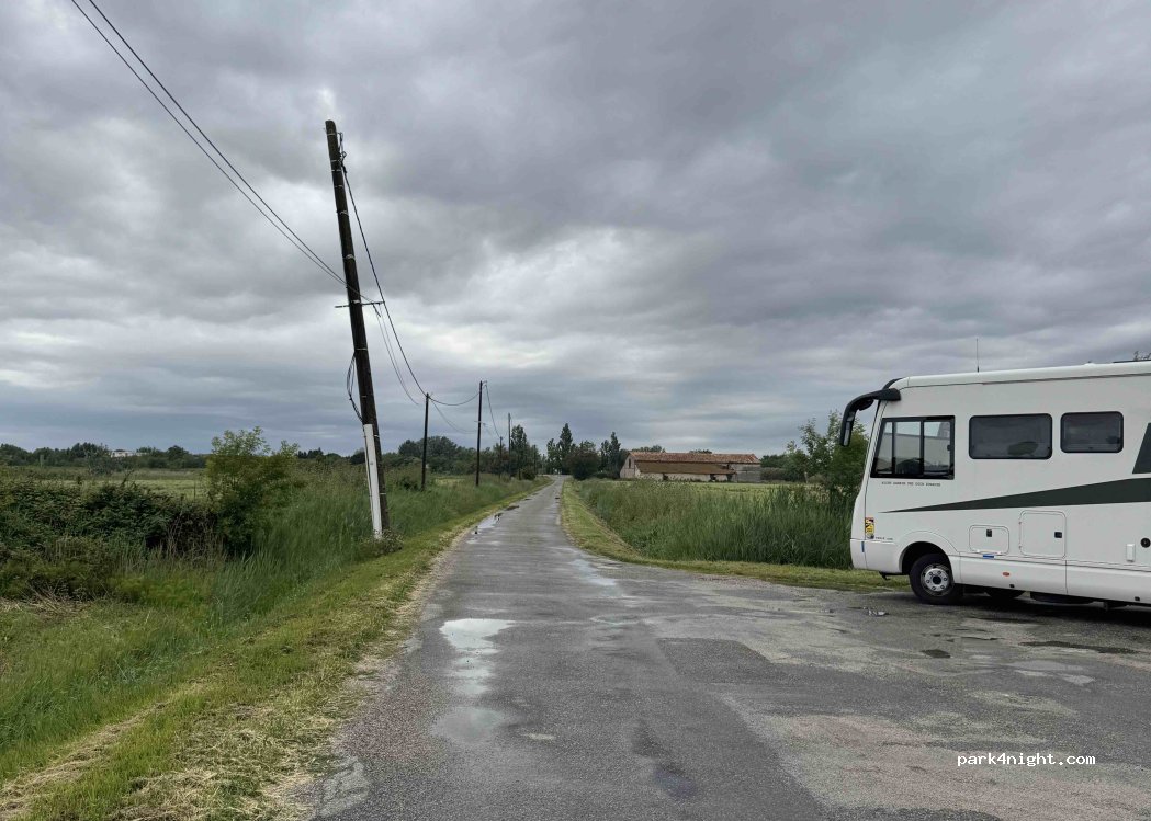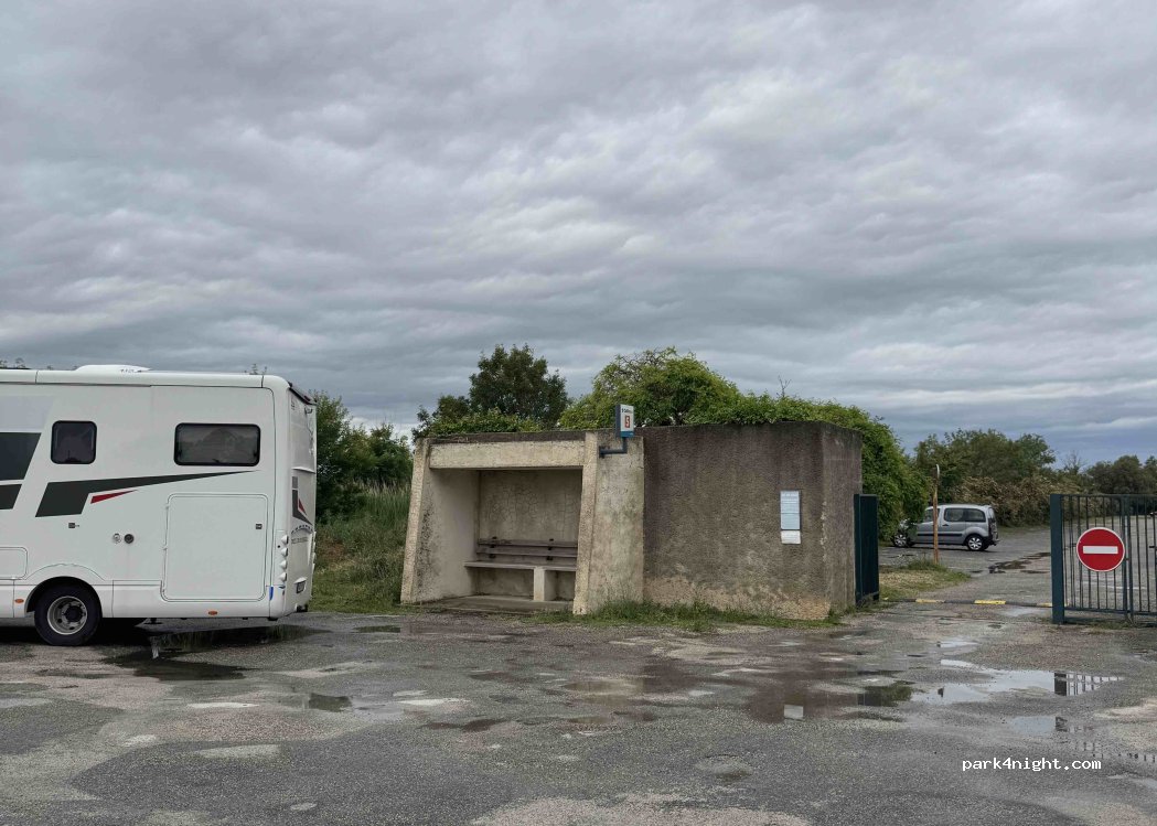 Small parking lot in front of the cemetery. Very quiet and surrounded by nature. Ideal for resting. There's even a security guard on duty during the day.