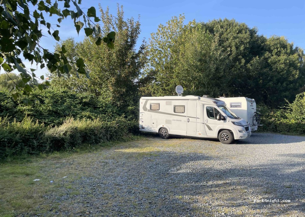 Stationnement isolé mais éclairé sans services. De temps en temps, une voiture passe la nuit en direction de la station pilote. Sinon agréable et calme.