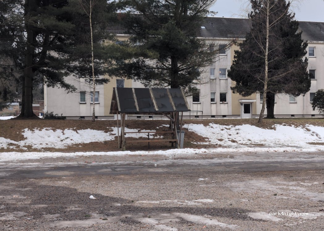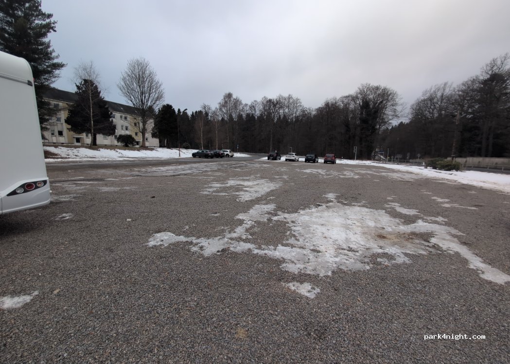 Geschotterter, großer Platz. Zwar nah an der Straße aber Recht ruhig. Leicht abfällig (2%). Hier findet man immer einen freien Platz, denke ich.