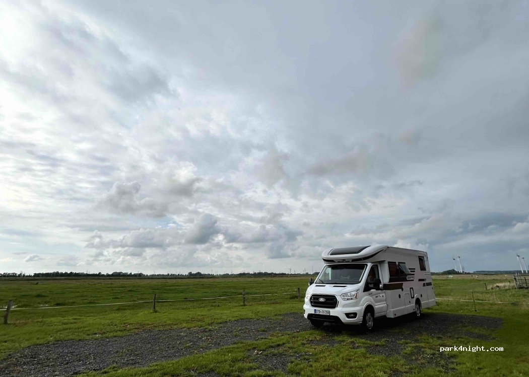 Wer es ein bisschen ruhiger mag, ist bei uns genau richtig. Wir bieten 3 Stellplätze auf unserem Bauernhof, hinter unsere Scheune mit einem weiten Ausblick auf die Marschwiesen. Bei uns sind nicht nur Wohnmobile und Wohnwagen herzlich willkommen, sondern auch Oldtimer-Gespanne, wie Lanz, Pampa &Co. Im 1,5km entfernten Dorf gibt es auch eine Einkaufsmöglichkeit, sowie einen Bäcker. Grillen ist ebenfalls erlaubt.