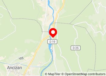 Zone plate en hauteur presque entièrement caché par la végétation, vue sur montagnes, rivière en contrebas, très calme, à l'ombre le matin.
